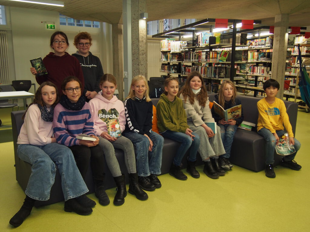 In kleiner Runde versammelten sich die Klassensieger*innen Jan Heyer (6a), Mira Schillak (6c), Marie Auffahrt (6d) sowie Merle Janssen (6e) mit jeweils einem Freund oder einer Freundin aus der Klasse in der Bibliothek. Krankheitsbedingt konnte Eric Tröger (6b) nicht kommen, wurde aber durch Magnus Krützmann vertreten. Die fachkundige Jury setzte sich zusammen aus aktiven und ehemaligen Deutschkolleg*innen der Schule und der Bibliothekarin. Die Siegerin des Vorjahres, Mi-Ja Kim, war ebenfalls erkrankt und konnte leider nicht dabei sein.